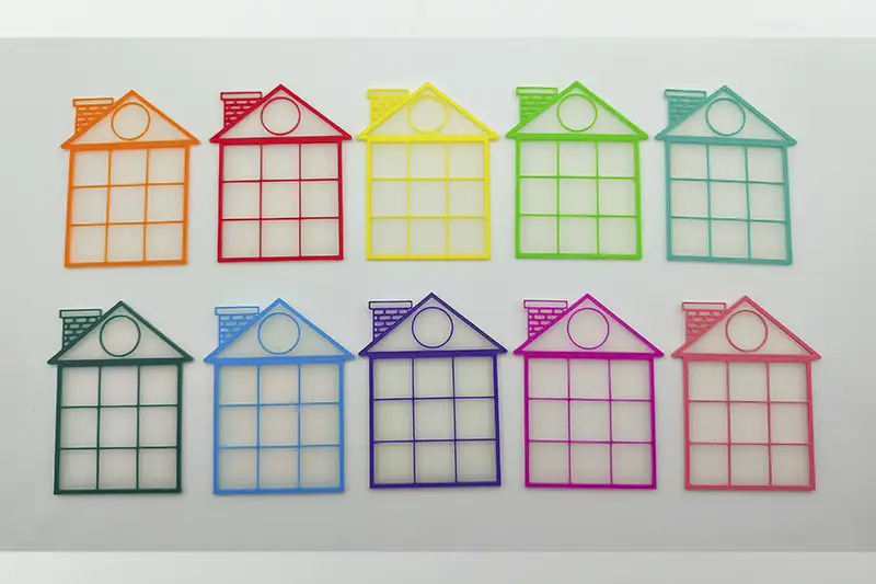 🏠 10 casas en colores variados (una de cada color) con la base transparente