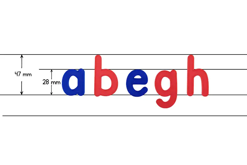Dimensiones y características del Abecedario de imprenta translúcido – minúsculas