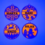 Bolas de Navidad personalizadas, modifica el nombre y los colores. Puedes elegir cualquier color, tenemos opciones en color madera fluorescentes (brillan con luz negra), metalizados, con efecto purpurina, translúcidos…