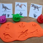 - Jugar a hacer sellos de huellas de dinosaurios en plastilina
